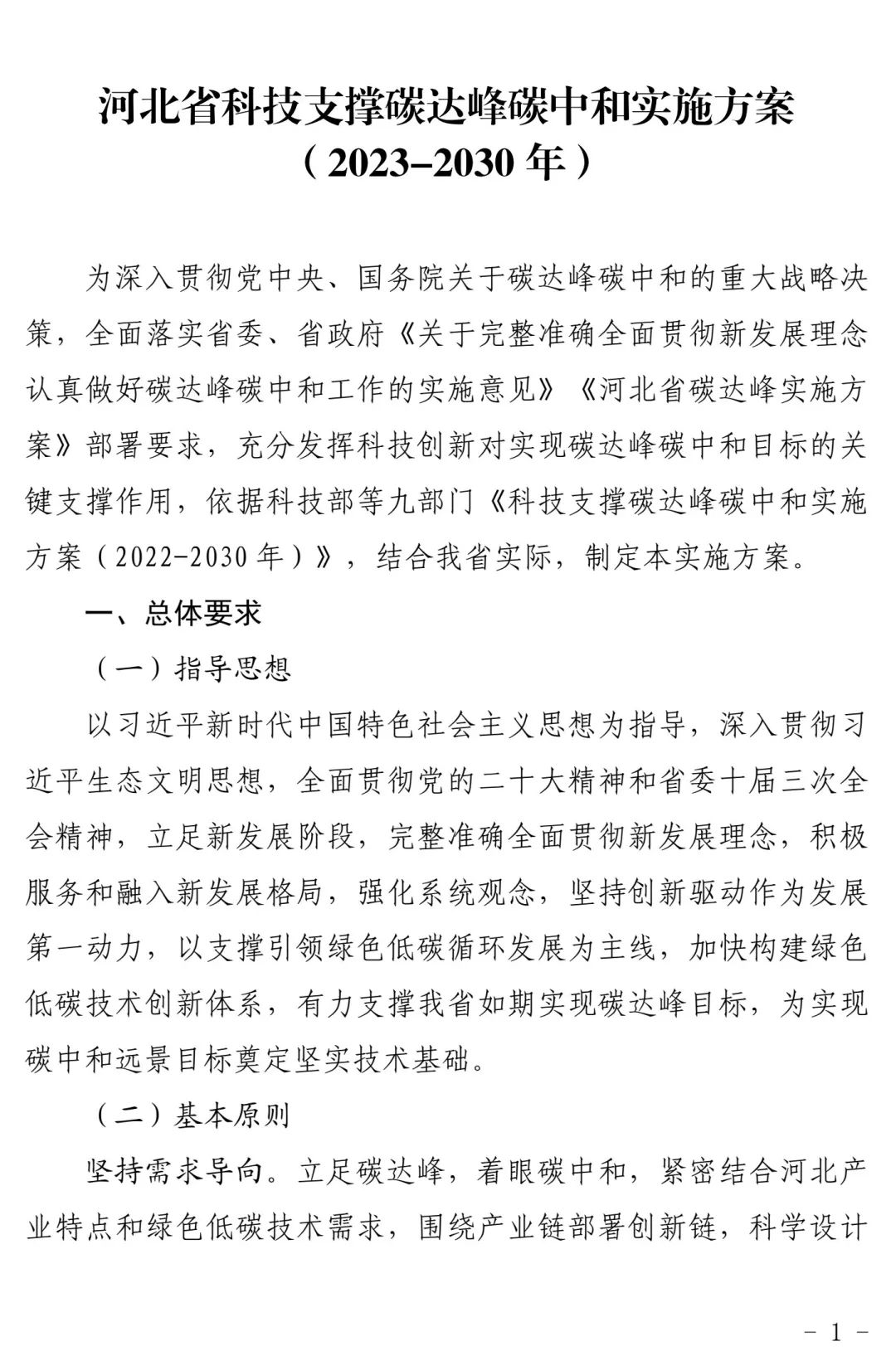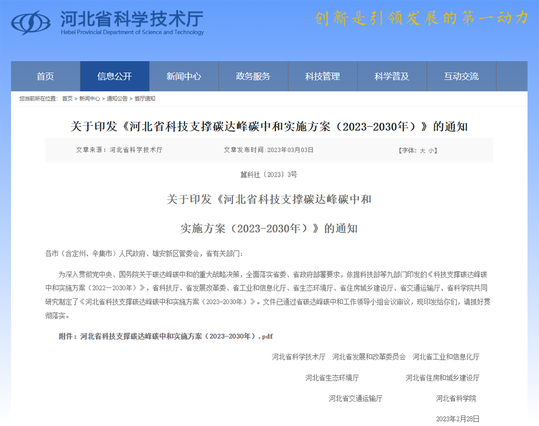 河北省科技支撑碳达峰碳中和实施方案(2023-2030年)