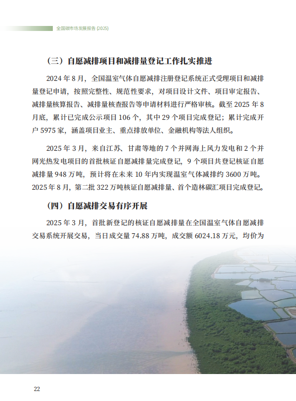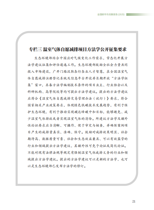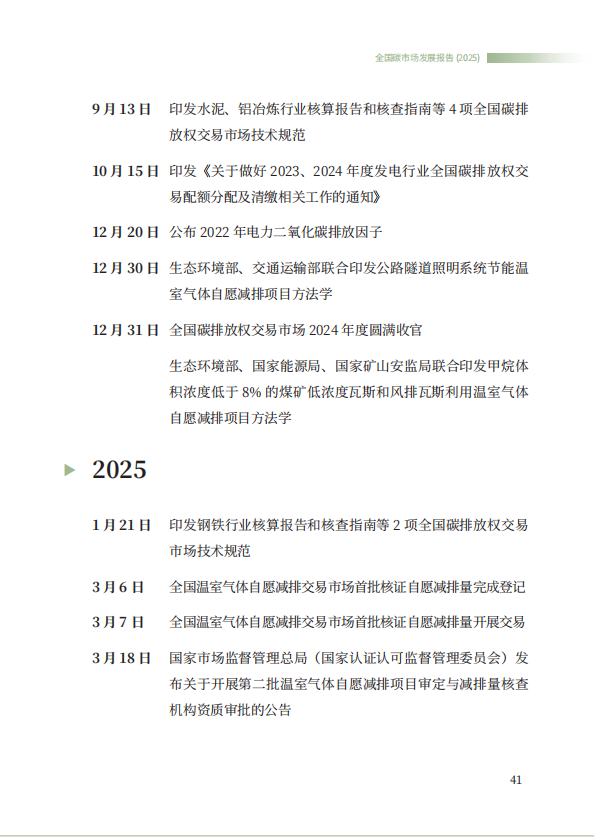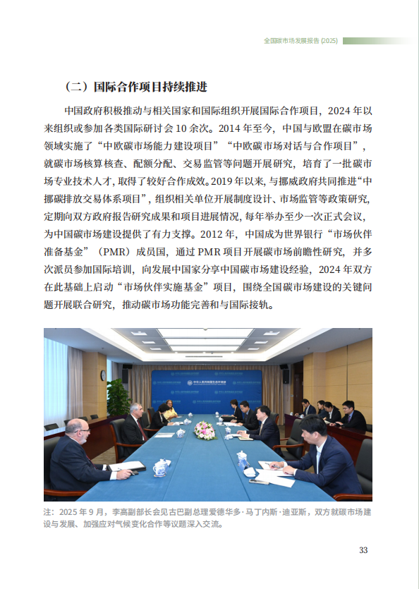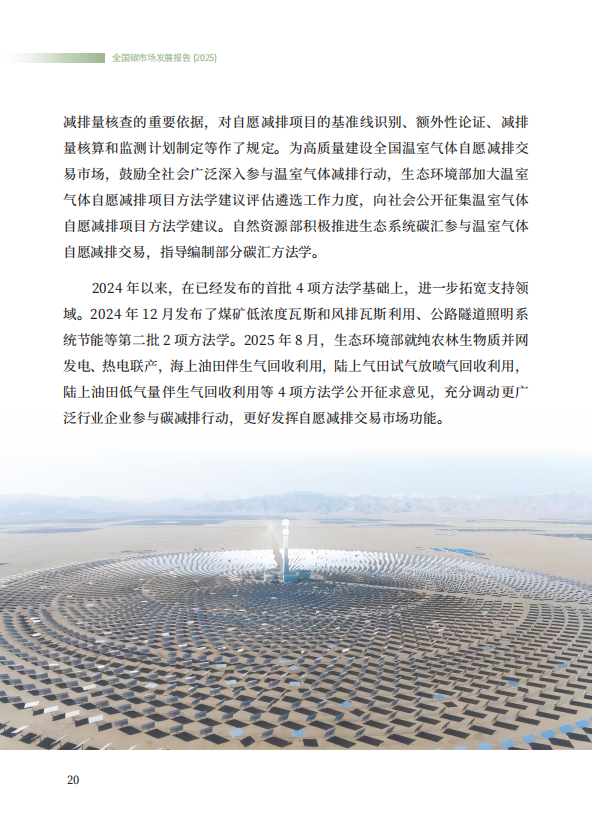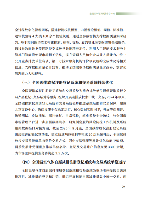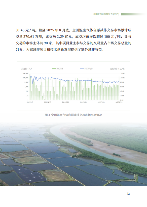 《全国碳市场发展报告(2025)》系统总结了全国碳排放权交易市场和全国温室气体自愿减排交易市场的最新建设进展,全方位展示了市场建设运行成效,展望了全国碳市场未来发展方向,是继2024年《全国碳市场发展报告(2024)》之后,生态环境部发布的全国碳市场最新进展情况报告。