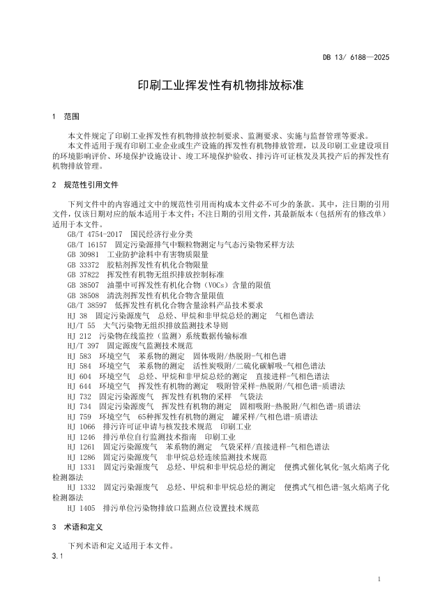 9月1日,河北省生态环境厅会同河北省市场监督管理局联合发布《印刷工业挥发性有机物排放标准》(DB 13/ 6188—2025)。详情如下: