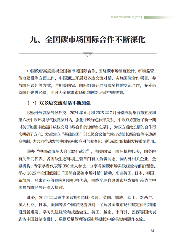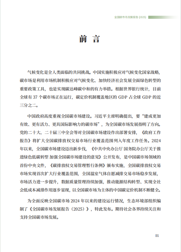 为促进社会各界更好了解全国碳市场发展情况,生态环境部组织编制了《全国碳市场发展报告(2025)》,并于9月24日在“2025年中国碳市场大会”上正式发布。