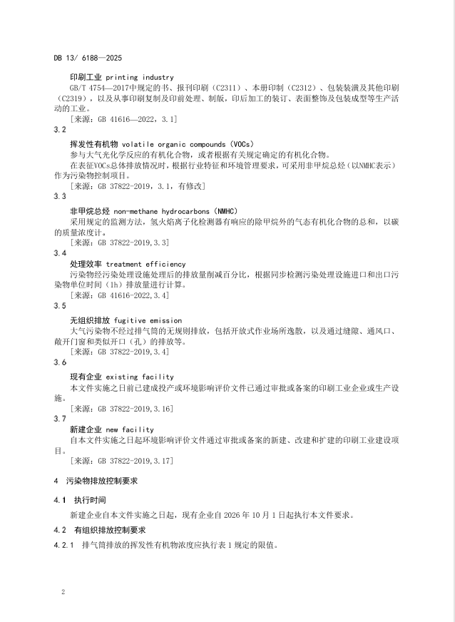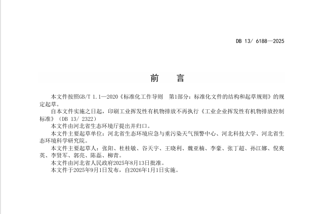 9月1日,河北省生态环境厅会同河北省市场监督管理局联合发布《印刷工业挥发性有机物排放标准》(DB 13/ 6188—2025)。详情如下: